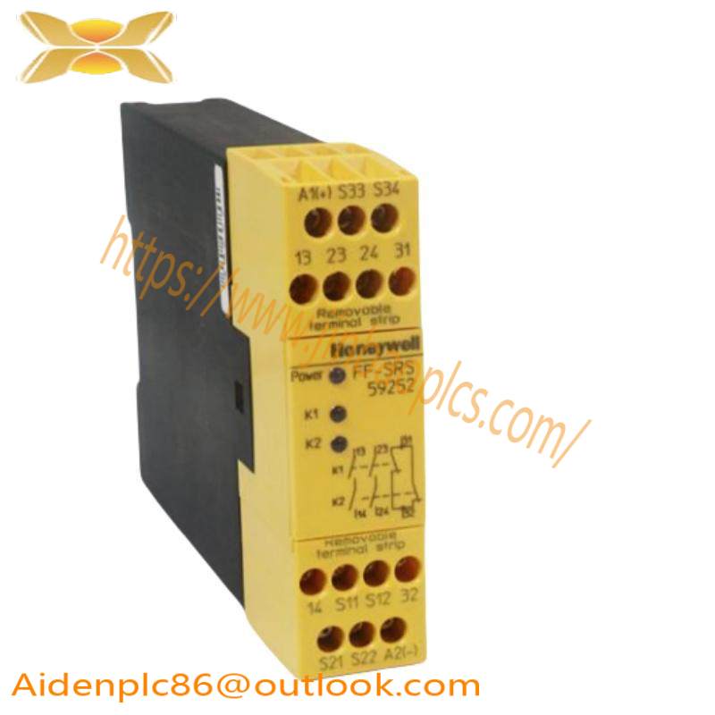 The Honeywell FF-SRS59252 Safety Relay Module is engineered with robust components to withstand harsh industrial environments, ensuring longevity and reliability in safety-critical systems.